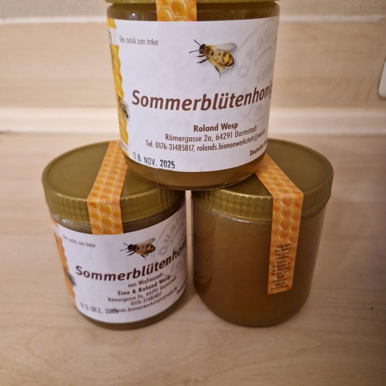 Später Honig, wie der Name sagt Sommerernte. Es ist der letzte geschleuderte Honig der Anfang bis Mitte Juli geerntet und geschleudert wird. Auch dieser Honig kann wieder recht grob auskristallisieren.