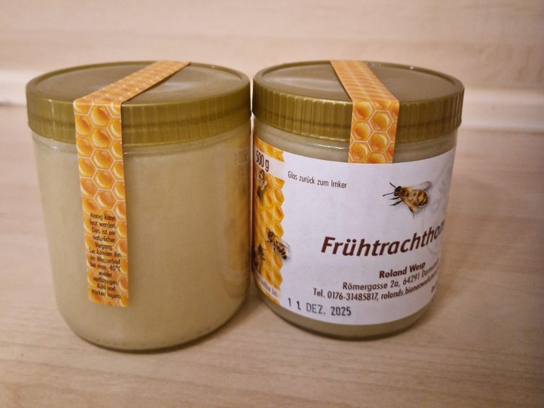 Die ist ein Honig den wir zwischen Frühtracht und sommertracht erneten. Er wird auch mit der Zeit feinsteif und kann feine Kristalle bilden.